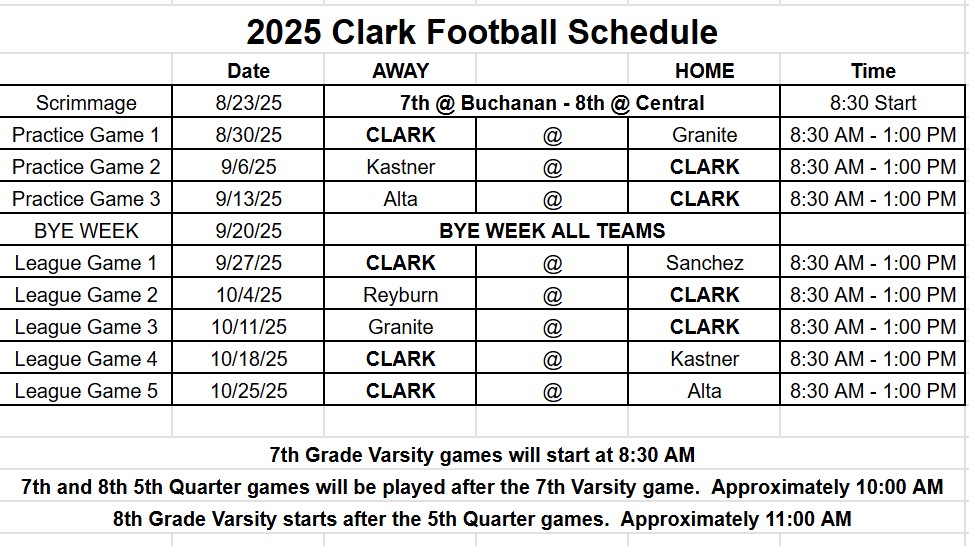 Practice Schedule starting 8/25/25: